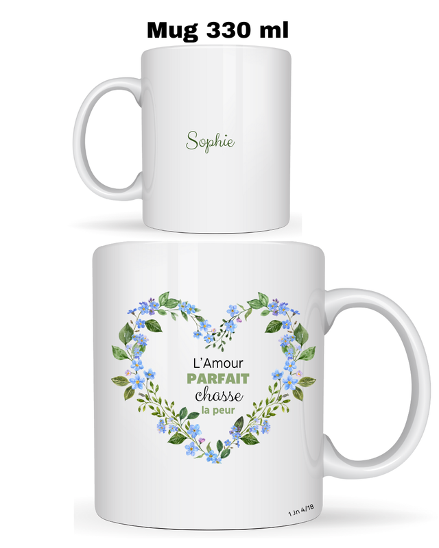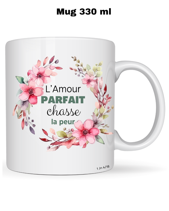 Parfait comme cadeau ou pour votre usage quotidien, ce mug vous rappellera que rien ne pourra vous séparer de l'Amour de votre Divin Père, quel que soit ce que vous traversez.