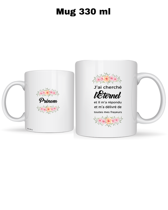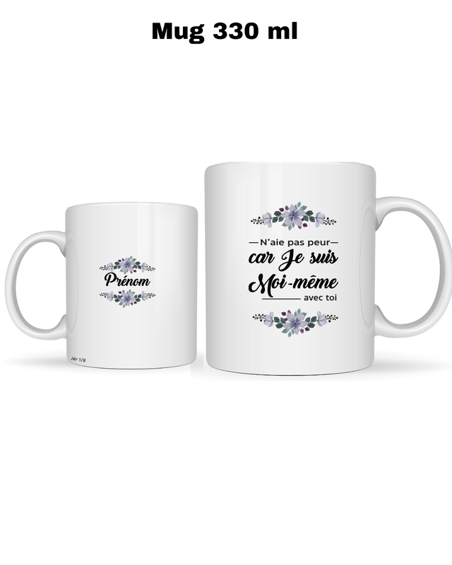 Ajoutez un prénom de votre choix pour offrir un cadeau unique et inspirant ou pour vous encourager personnellement chaque jour. Remplacez l’exemple par le prénom de votre proche et faites de ce mug une bénédiction personnalisée !