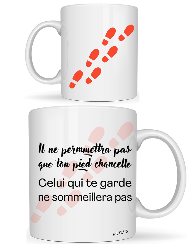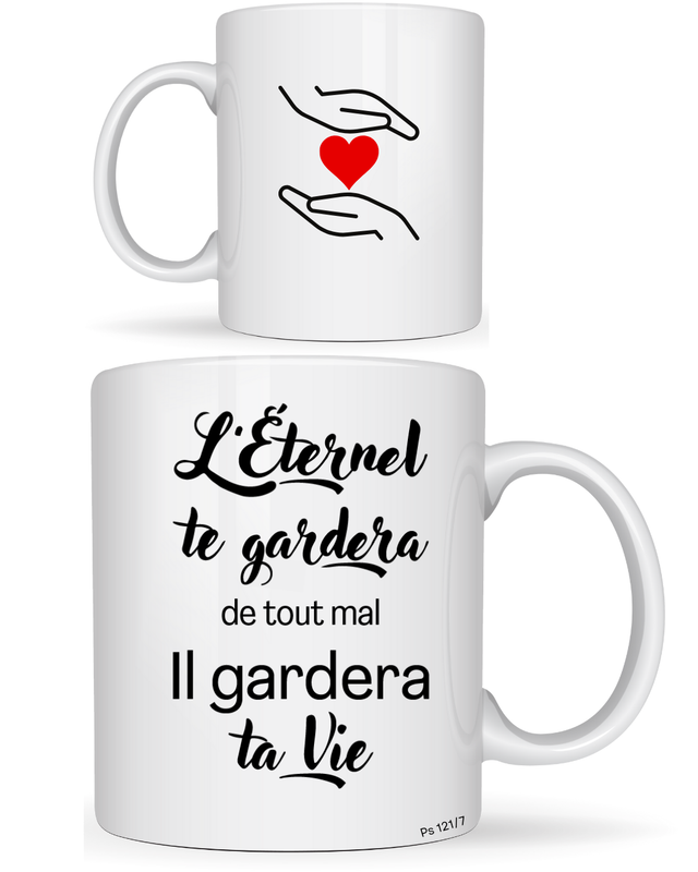 Ce mug orné du Psaume 121/1-2 vous rappelle la Promesse de protection divine : "Je lève mes yeux vers les montagnes d'où me viendra le secours, le secours me vient de l'Éternel qui a fait le ciel et la terre."